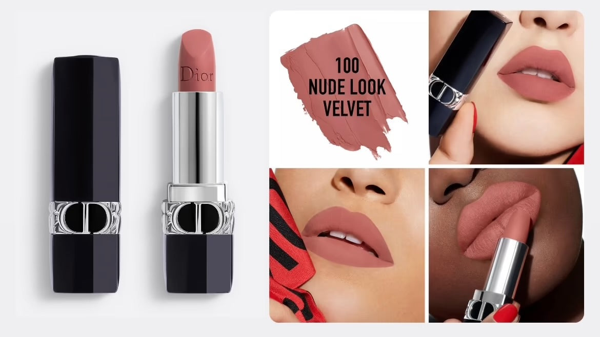 Experience the timeless elegance of Dior Rouge Lipstick in 100 Nude Look Velvet. This miniature lipstick delivers intense color with a luxurious, velvety matte finish. Enriched with hydrating ingredients, it glides on smoothly for comfortable, long-lasting wear. Perfect for slipping into your bag for touch-ups on the go.