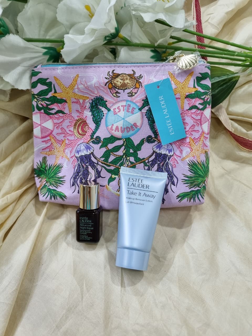 Your perfect skincare duo, ready to go! This Estée Lauder mini set features two iconic essentials – Advanced Night Repair Synchronized Multi-Recovery Complex (7ml) to hydrate, smooth, and visibly renew skin overnight, and Take It Away Makeup Remover Lotion (30ml) to gently melt away makeup and impurities. Complete with a sleek travel pouch, this set is ideal for testing, gifting, or keeping your skincare routine flawless on the go.