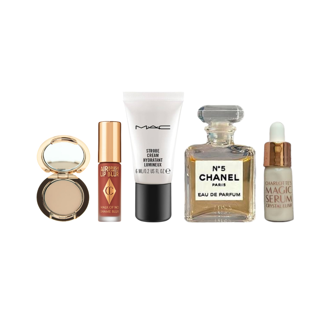 A perfectly curated edit of premium minis to keep you glowing, sculpted, and subtly scented—anytime, anywhere. Whether it’s a quick glam-up before brunch or a touch-up between events, this kit brings effortless elegance to your beauty routine.